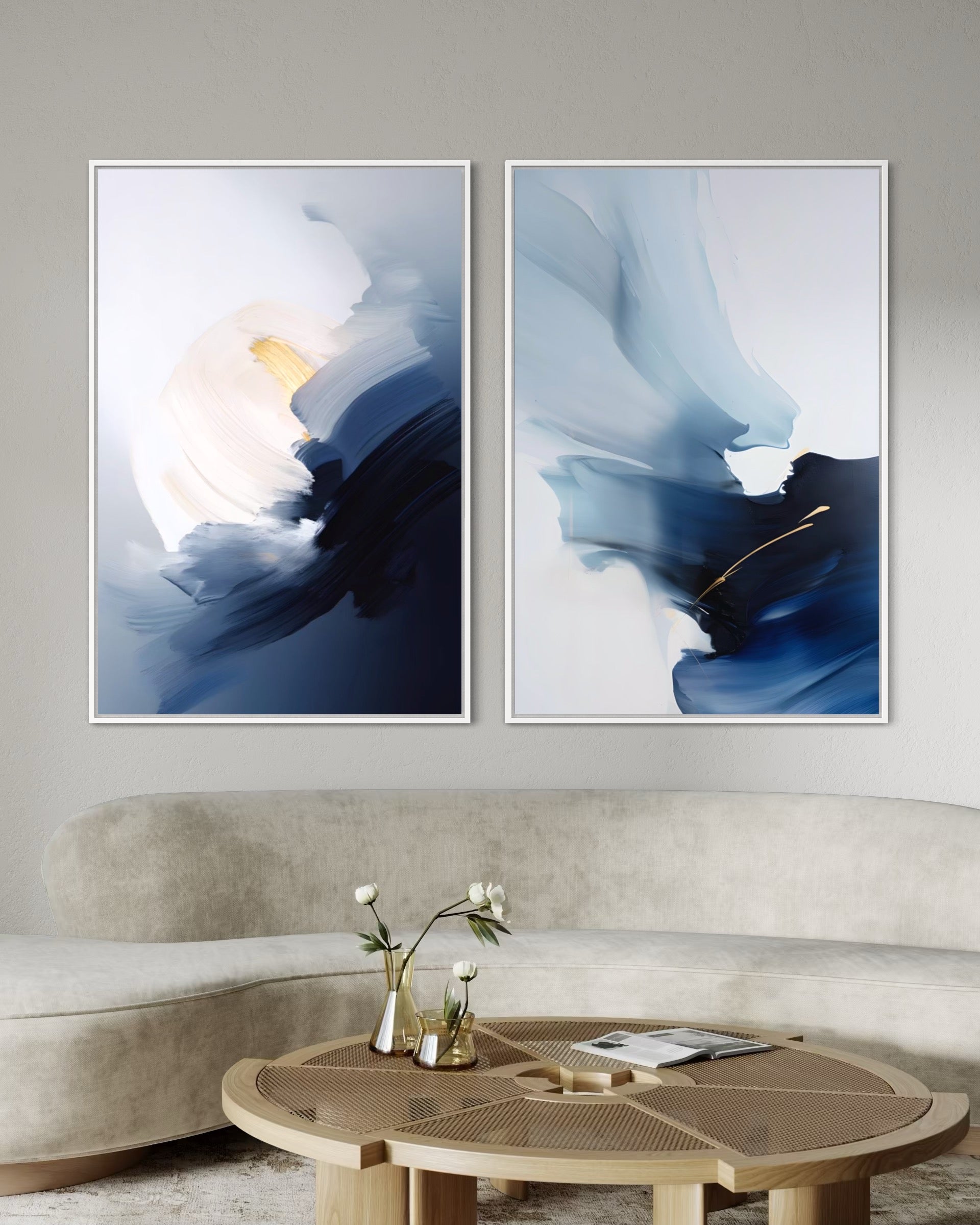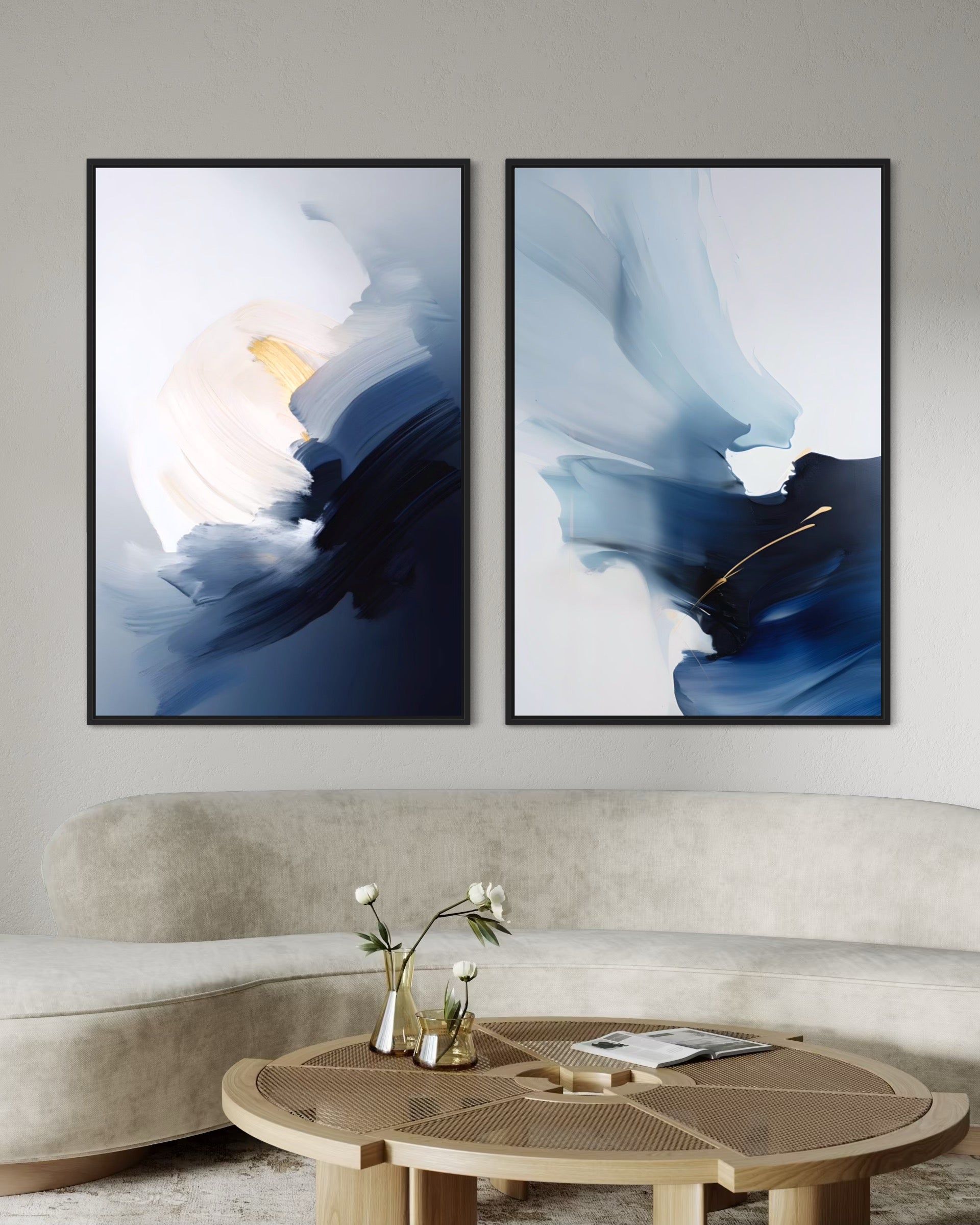 2221 - Dupla de Quadros Azul Moderna