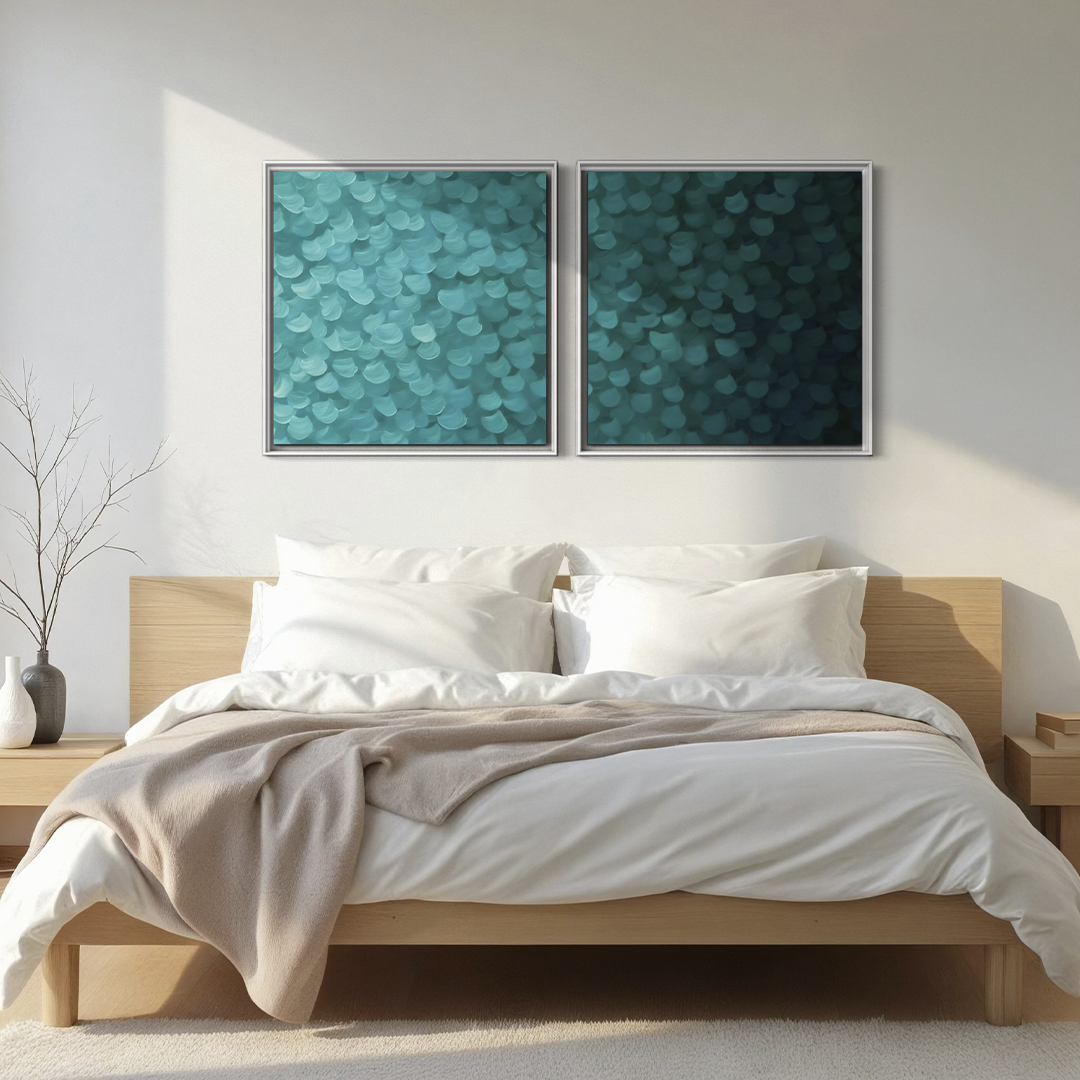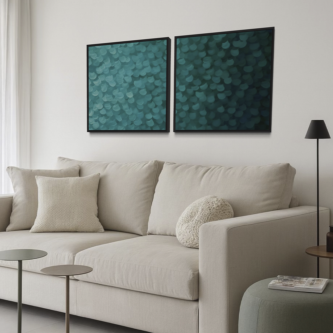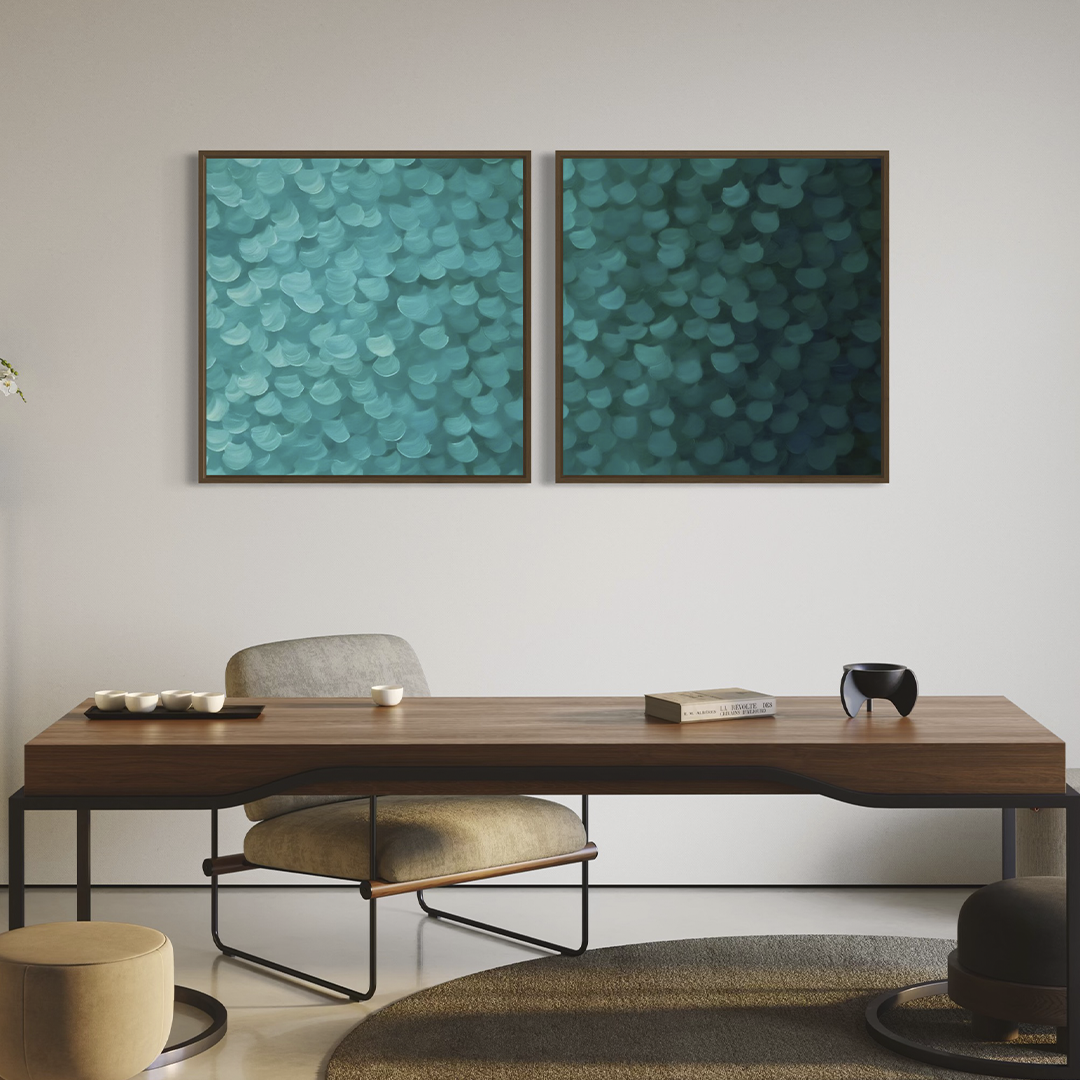 2255 - Dupla de Quadros Abstrato Toques de Turquesa