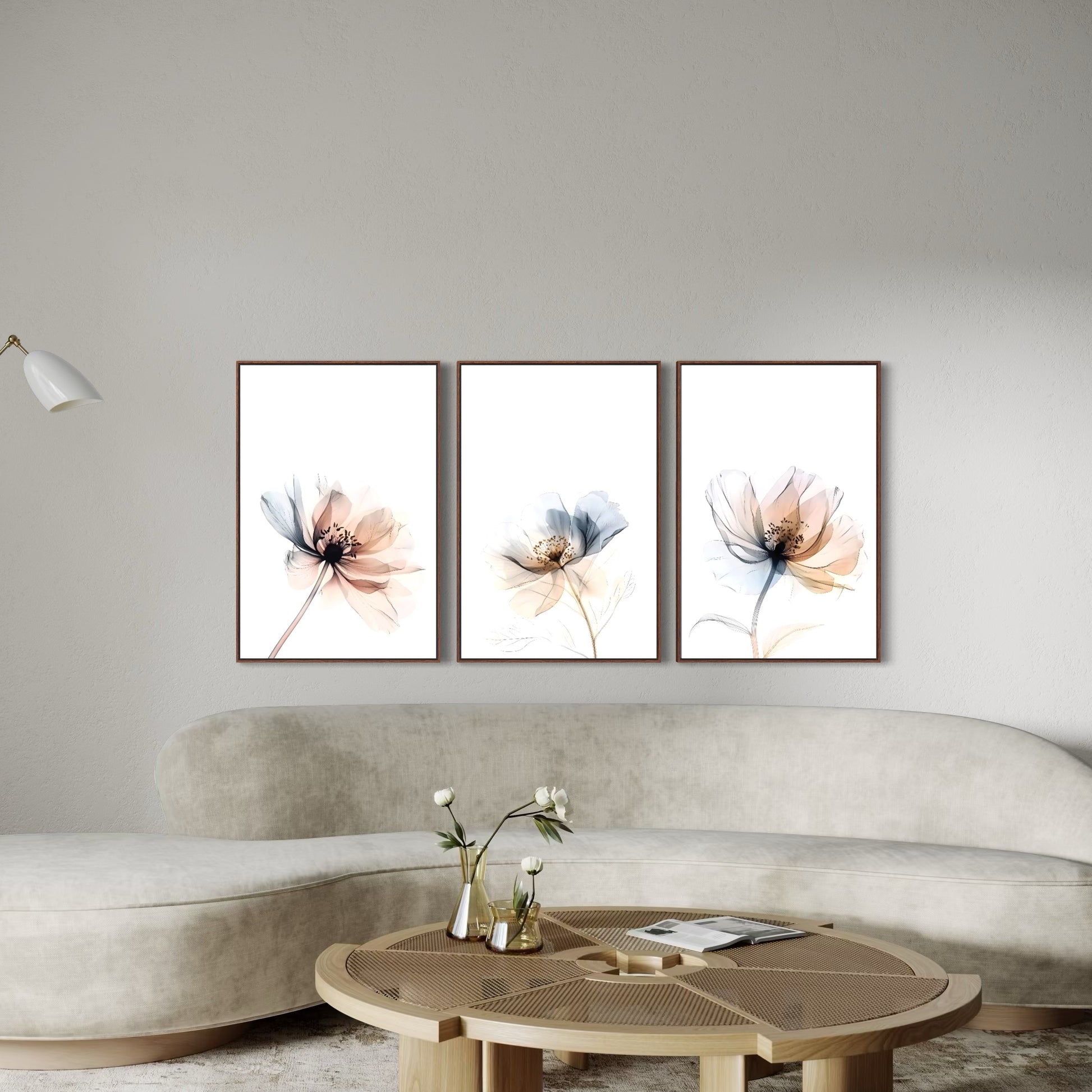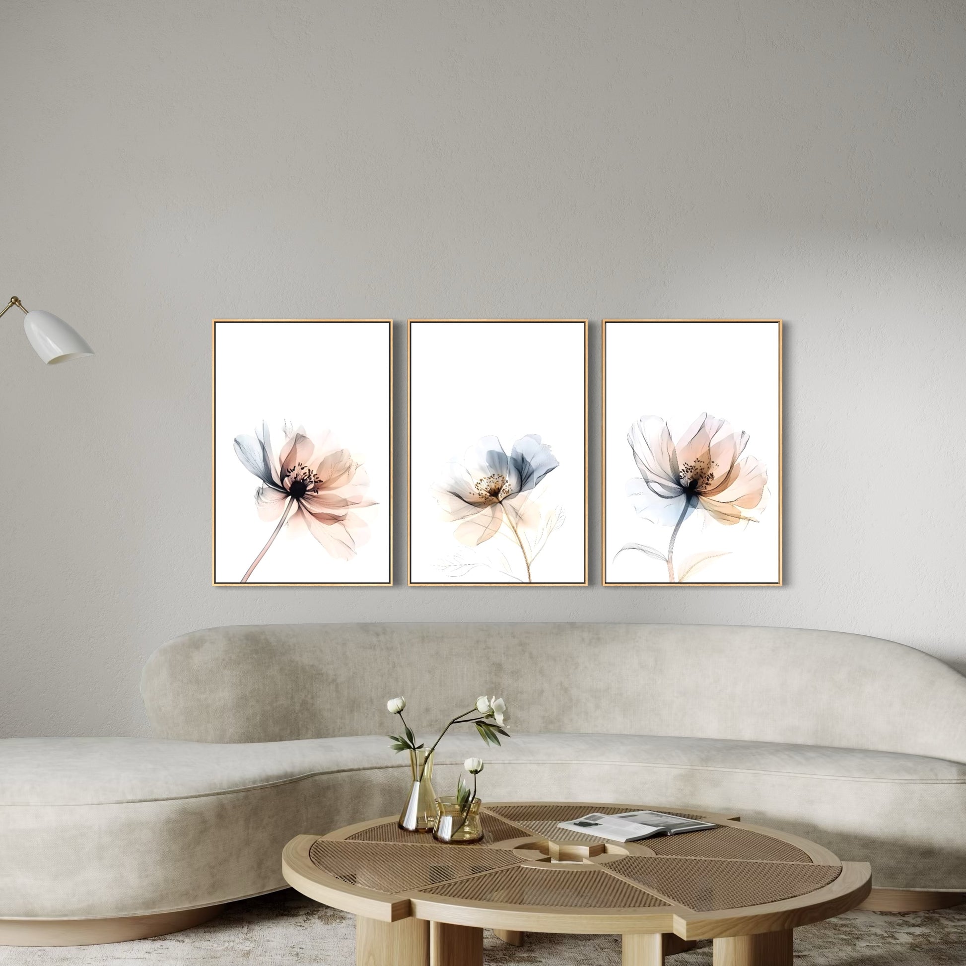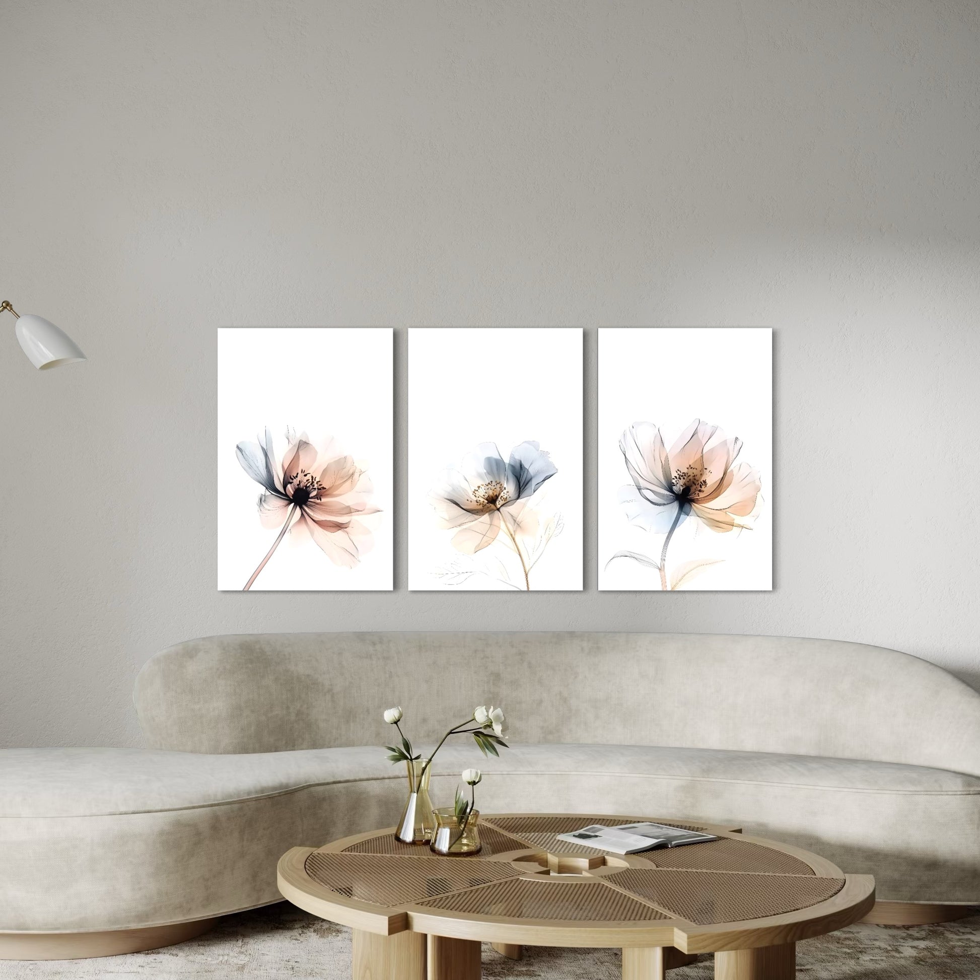 3039 - Trio de Quadros Flores Minimalistas